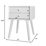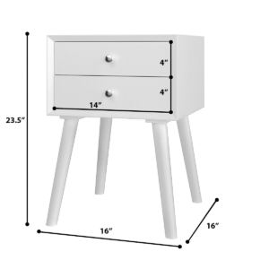 Experience Elegant Storage with the WHITE MID-CENTURY WOODEN NIGHTSTAND WITH 2 DRAWERS